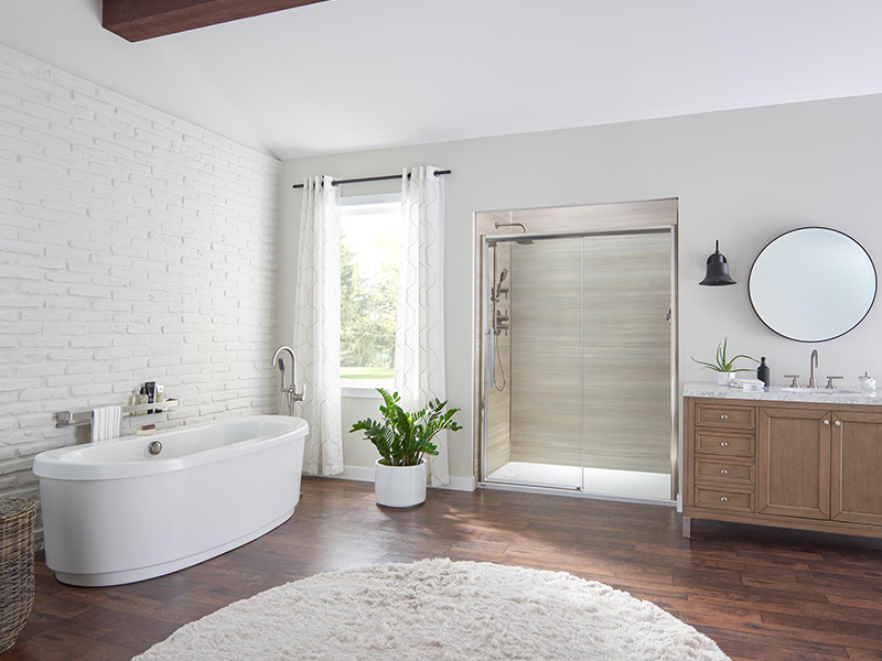 - Tub-to-shower conversions — Replace your old bathtub with a low-threshold shower to completely update the space and eliminate the need to step over a barrier to bathe.